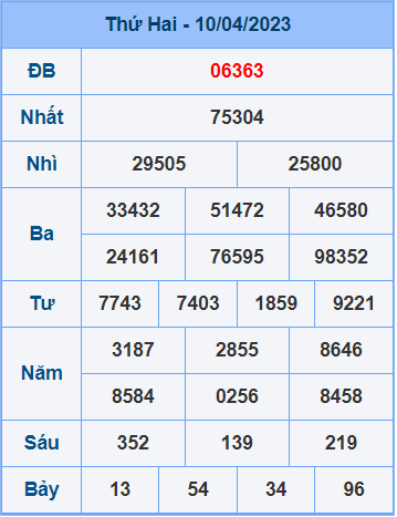 Kết quả Xổ Số Miền Bắc 10-4-2023: