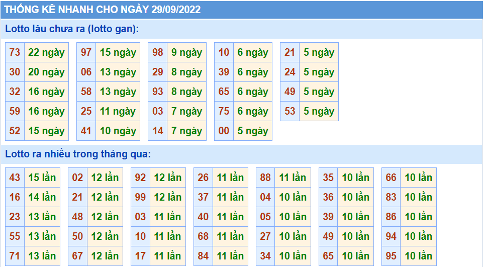 Phân tích thống kê tần suất XSMB 29/92022