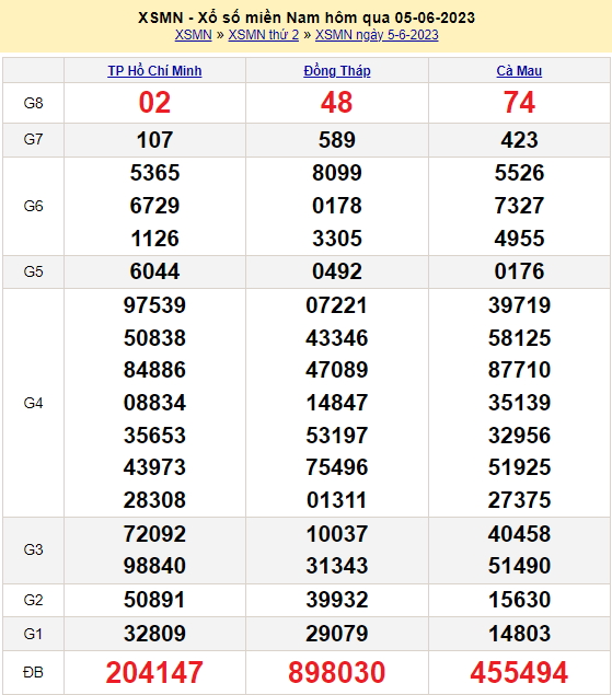 Xem cầu lô đẹp dự đoán kết quả soi cầu miền Nam thứ 3 ngày 6/6/2023 hôm nay: